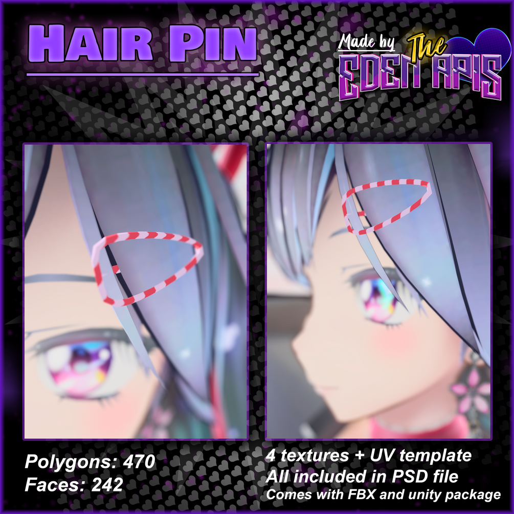 A cute Hair Pin you can add to any avatar you like. the rear Pin is also removable for cleaner look.